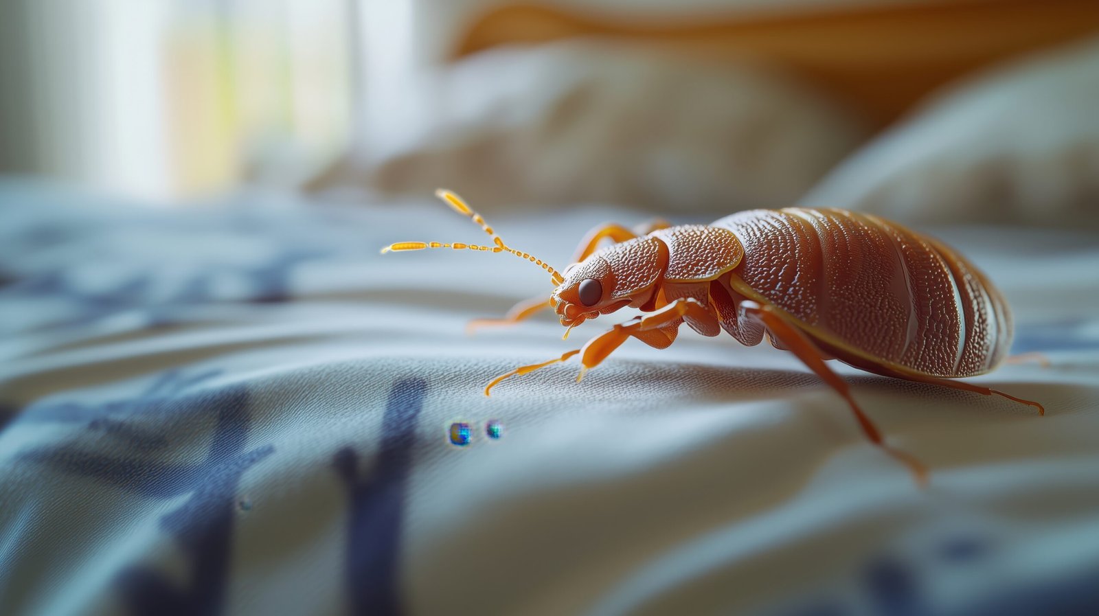 Bed bugs are small, reddish-brown insects that feed on human blood at night. They hide in mattresses, couches, and cracks.